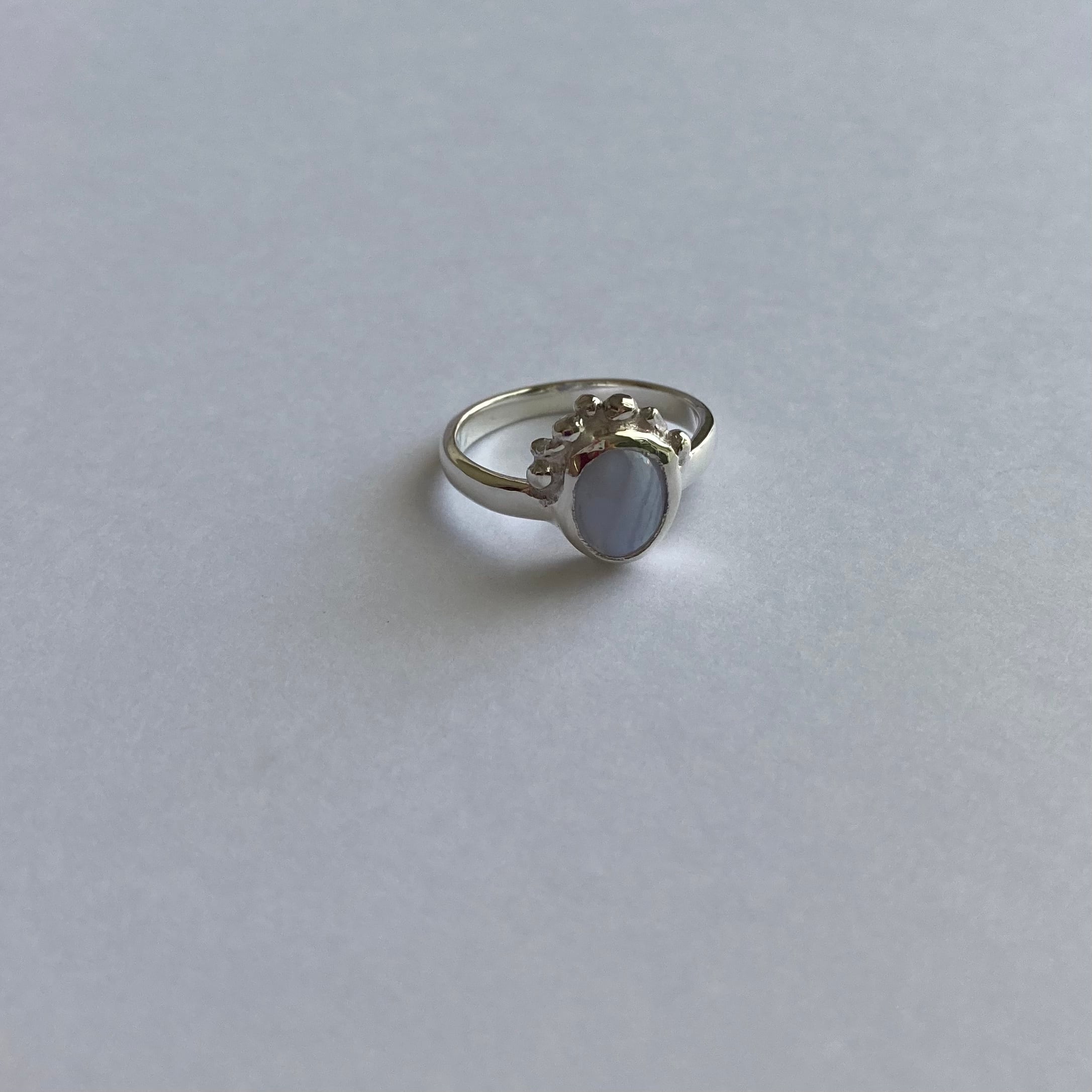 ブルーレースアゲートのリングです。 石の模様が可愛いです。 ・素材:シルバー925 ブルーレースアゲート ・サイズ:9号