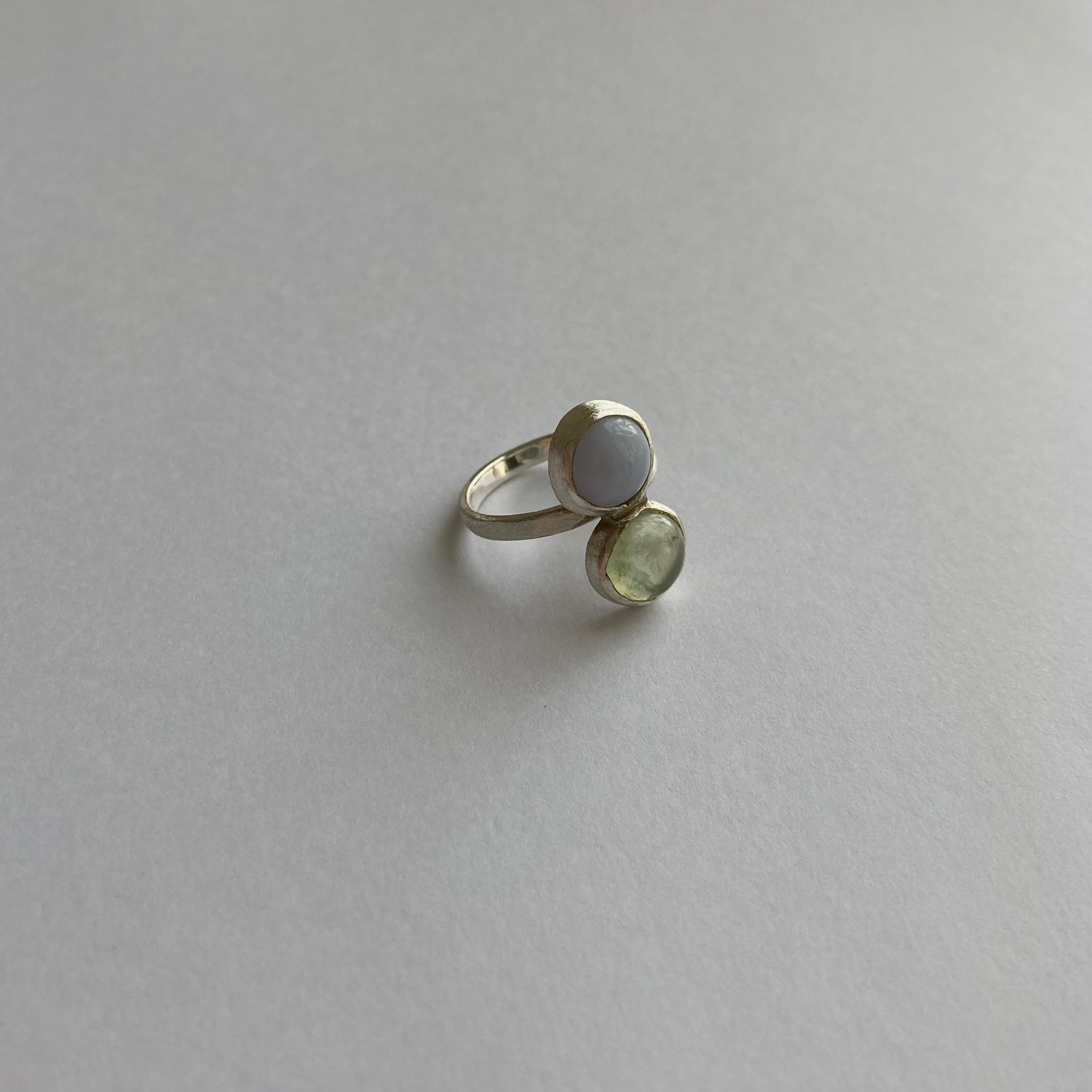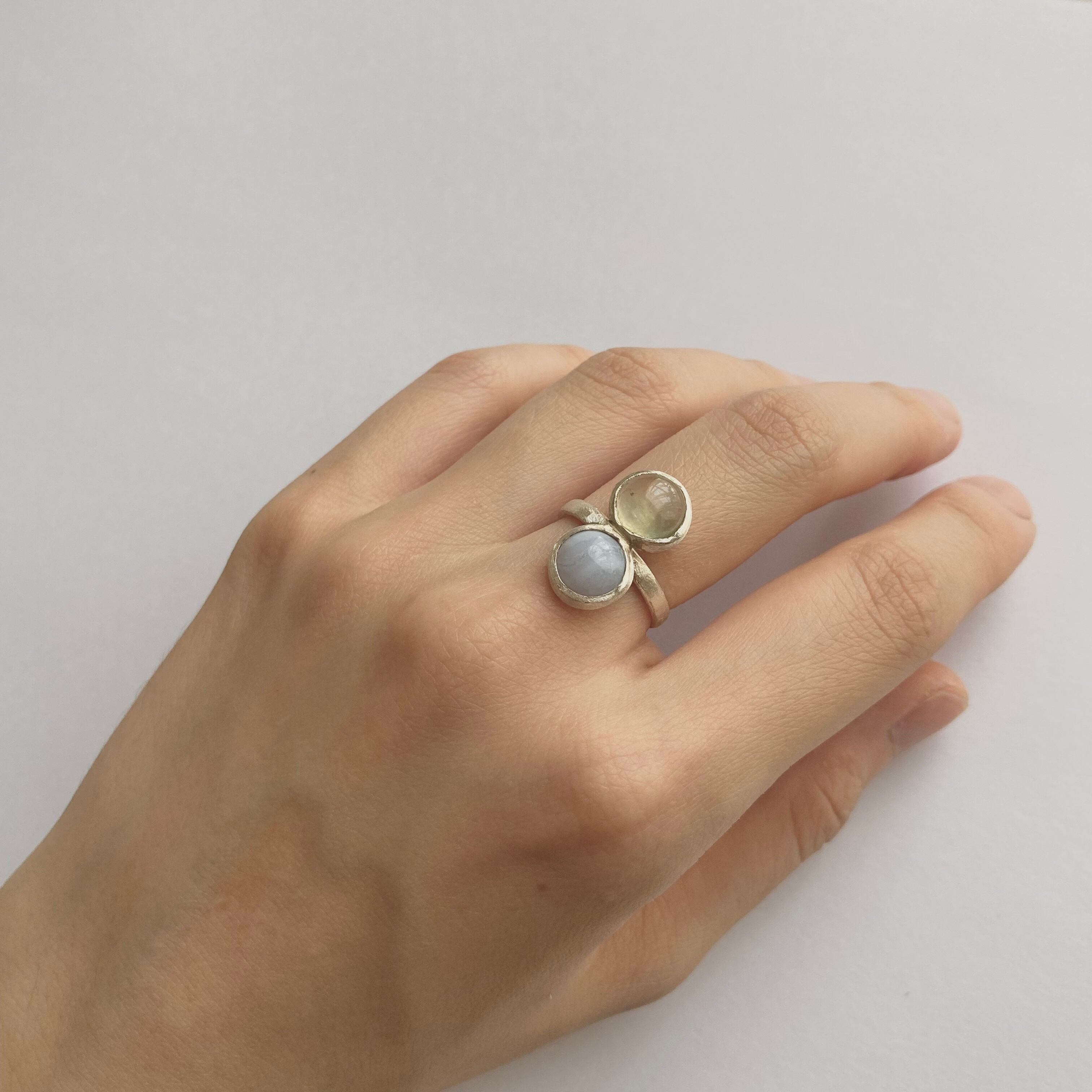 プレーナイトとブルーレースアゲートを2つ留めたリングです。
