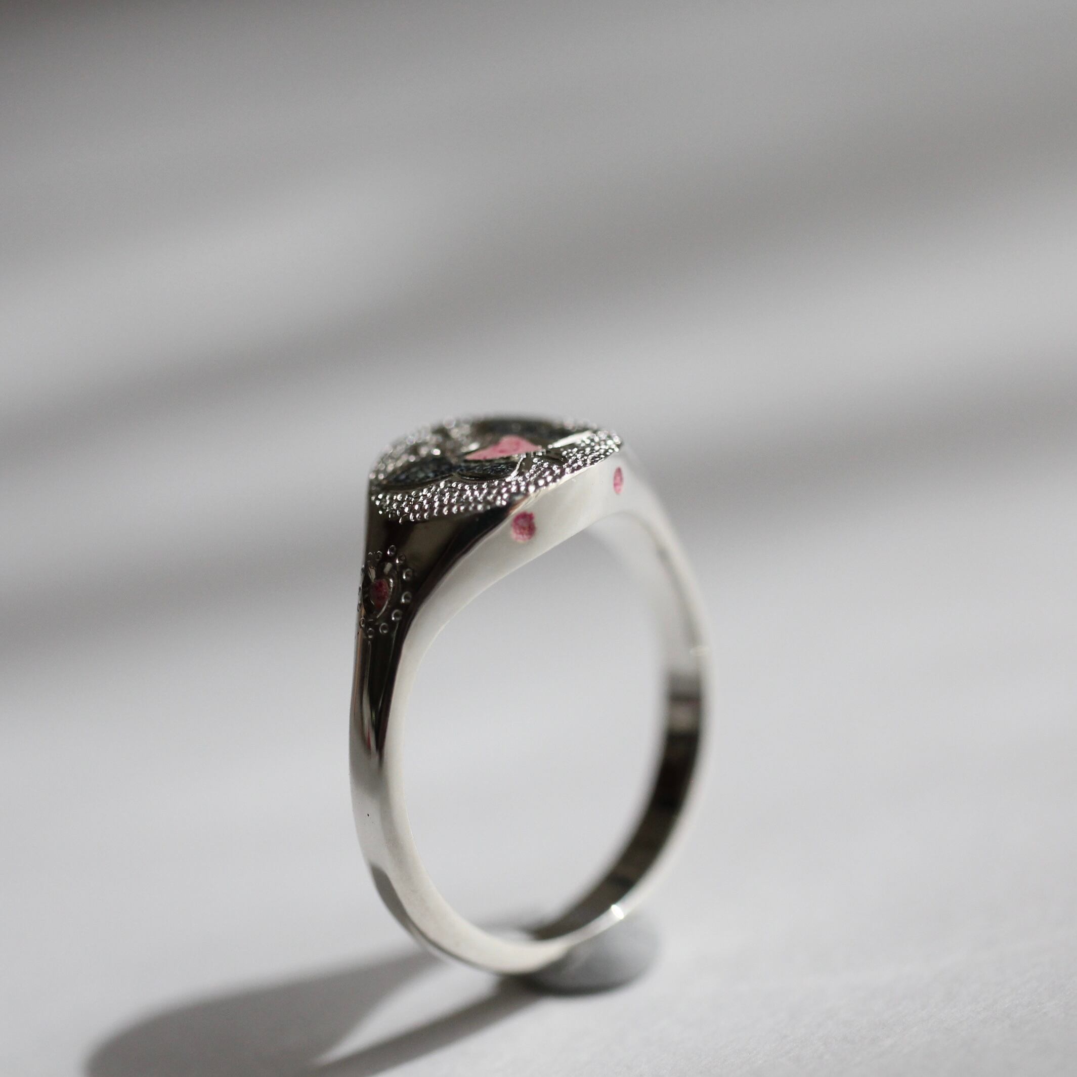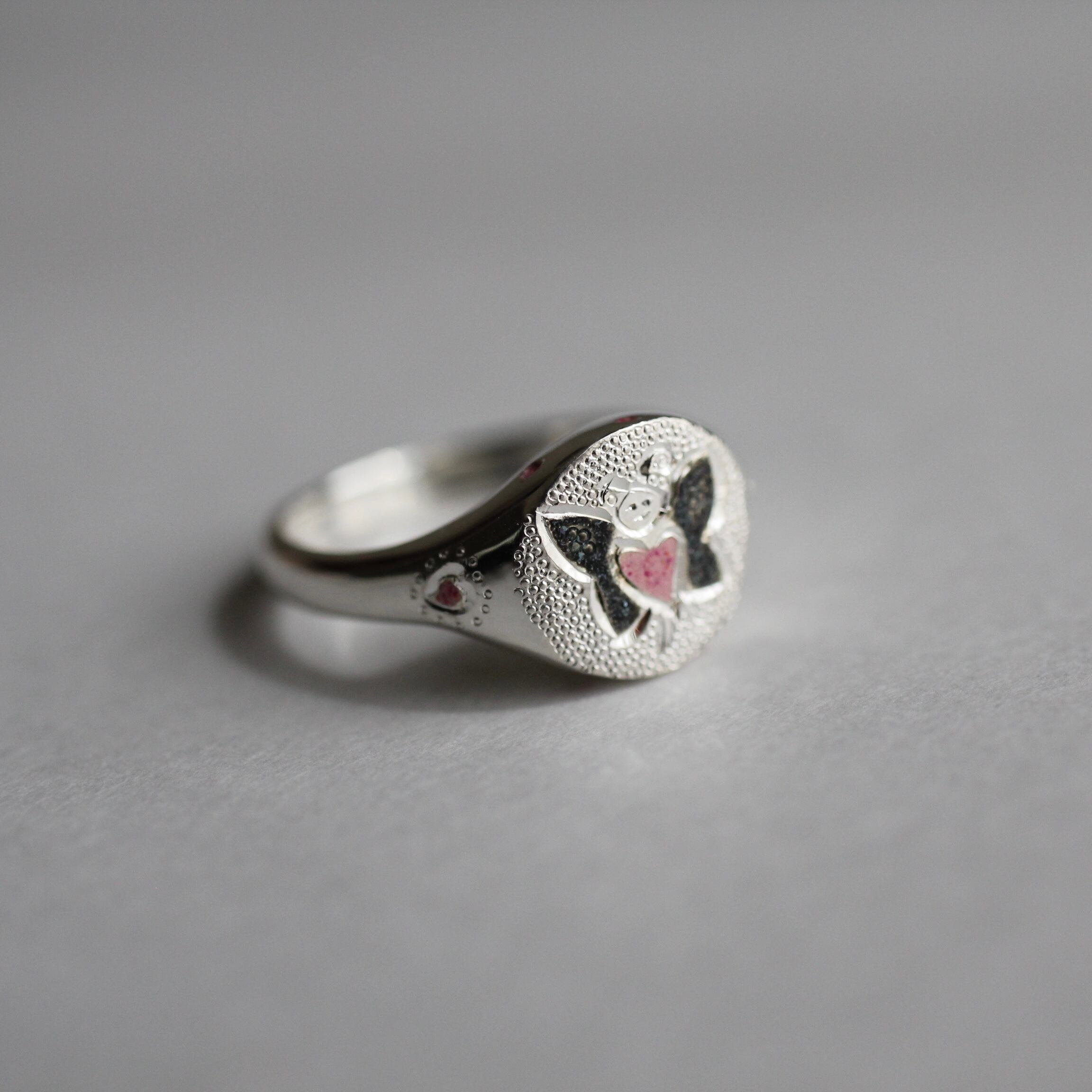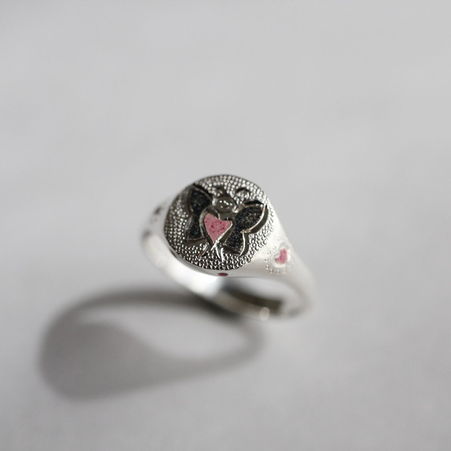 黒い羽をした蝶の妖精。リングの腕部分にはハートを彫りました。